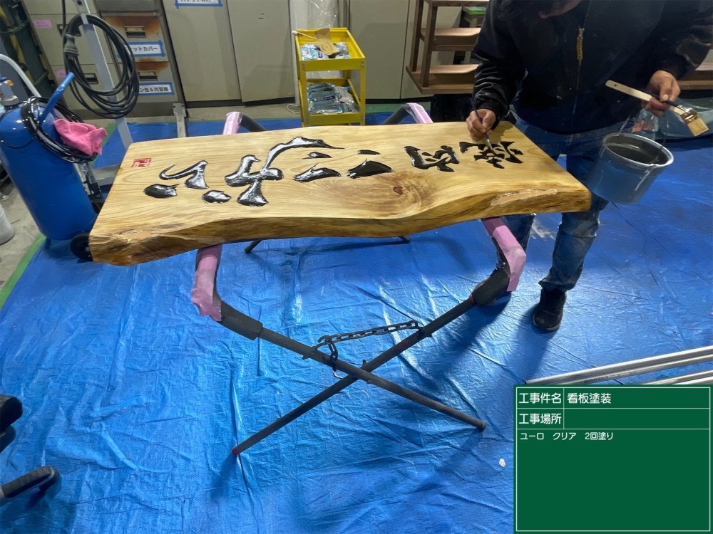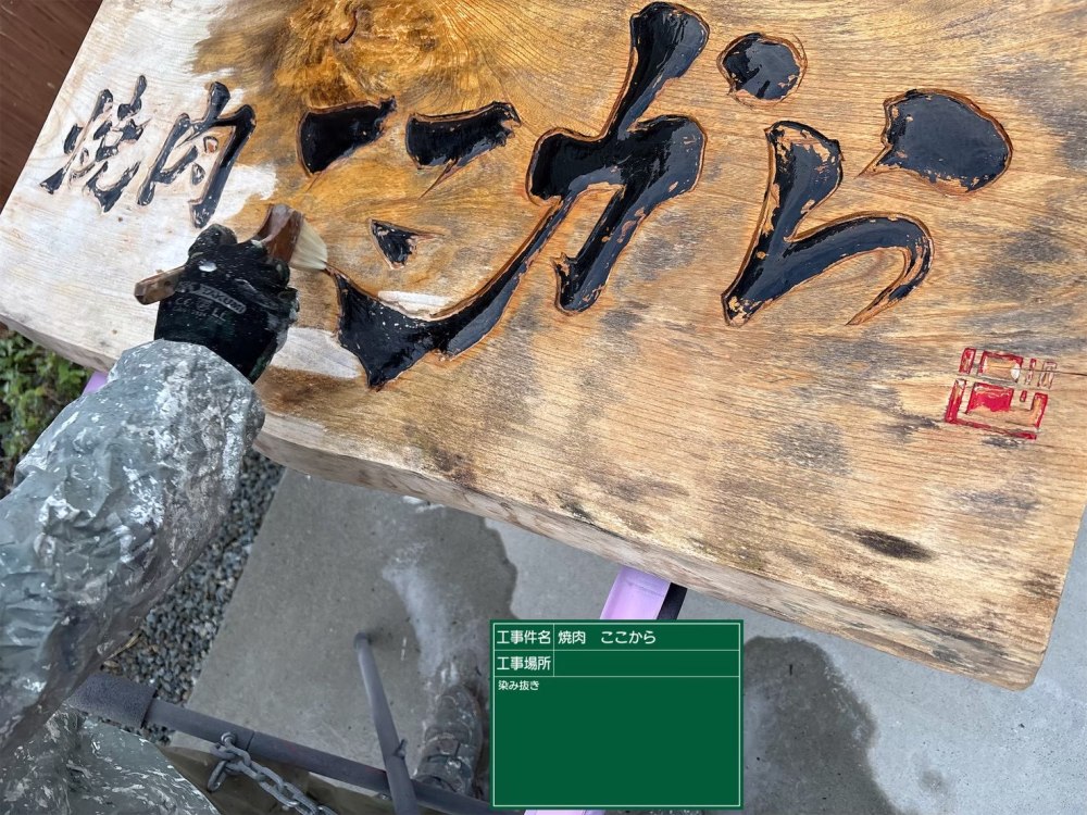 今回は、焼肉店さまの木製看板の塗装工事をご依頼いただきました。