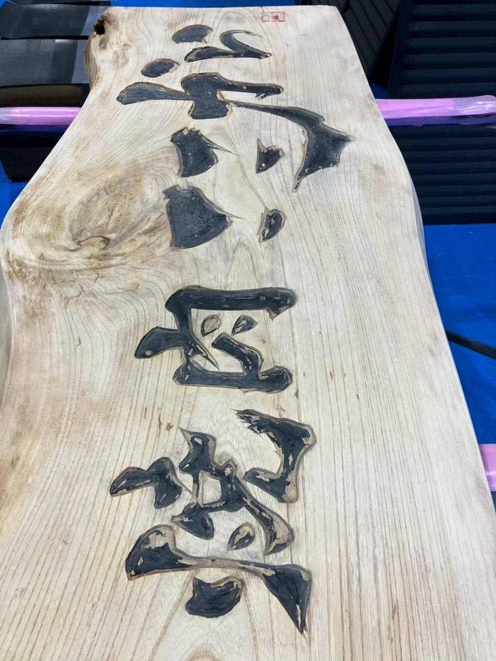 塗りつぶしではなく、木製看板ならではの質感を大切に施工。